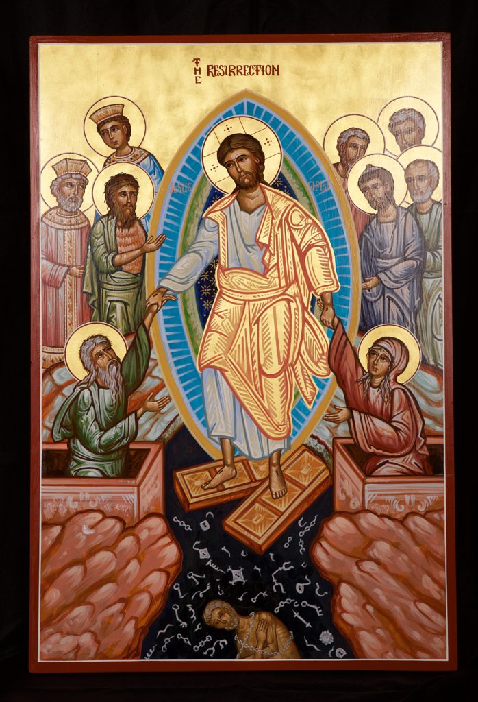 This image by Nicholas Papas depicts Christ’s freeing of souls trapped in Hades, his rising from the grave and his victory — our victory — over death.